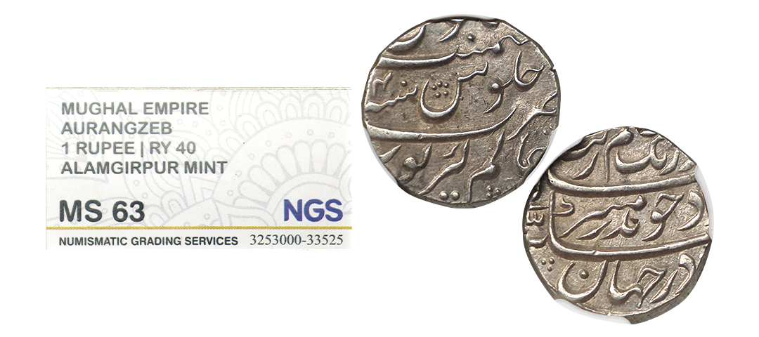 Mughal, Aurangzeb, Silver Rupee, Alamgirpur Mint, RY 40, Complete Mint name visible with Excellent Strike and superb matt finish, very attractive, Very Rare.