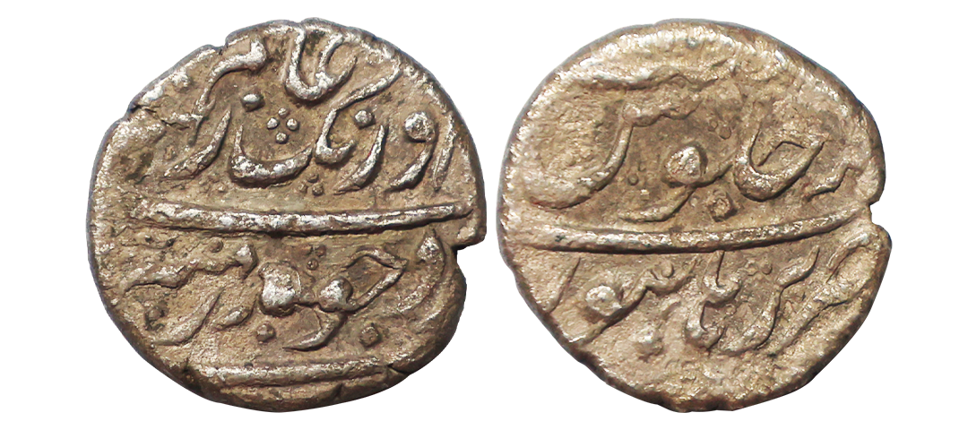 Mughal, Aurangzeb, Silver ¼ Rupee, 2.60g, Burhanpur Mint, near complete mint name at bottom (KM 293.3). Extremely Fine, Very Rare.