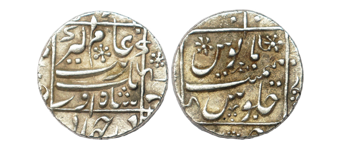 Mughal, Aurangzeb (AH 1068-1118, 1658-1707 AD), Silver Rupee, 11.55 gms, Junagarh Mint, Obv. Shah Aurangzeb Alamgir withing the square & sikka dar jahan zad chur badr-e-munir around, Rev. julus maimant manus within square, KM # 301.2, very fine+, very scarce