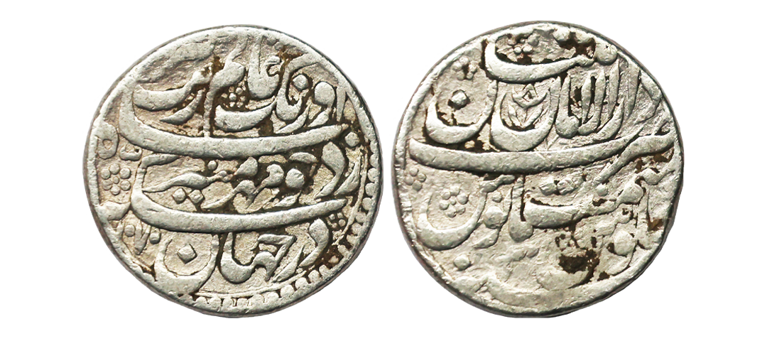 Mughal, Aurangzeb (AH 1068-1118, 1658-1707 AD), Silver Rupee, 11.35 gms, Dar-al-aman Multan Mint, AH 1070, RY 3, Obv. sikka dar jahan zad chu badr-e-munir Aurangzeb Alamgir Badshah ghazi, Rev. sana julus maimanat manus zarb Dar-al-amaan Multan, KM # 300.62, very fine, very scarce.