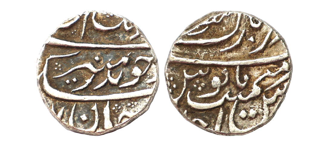 Mughal, Aurangzeb (AH 1068-1118, 1658-1707 AD), Silver Nazarana Rupee, 11.40 gms, Dar-al-Khilafat Shahjahanabad Mint, AH 1070, RY Ahad, Obv. ‘Alamgir Badshah Ghazi’ within square, ‘Abu al Muzaffar Muhiyaldin Muhammad Aurangzeb Bahadur Sana 1070’ around & dotted borders around, Rev. ‘zarb Dal al-Khilafat Shahjahanabd’ within square, ‘julus maimanat manus Sana Ahad’ around & dotted borders around, Unlisted, struck on broad flan, very fine, extremely rare. This exceptional specimen features a broad flan, reminiscent of prestigious Nazarana coins used for ceremonial occasions. Both sides are meticulously struck, showcasing clear and fully readable legends.