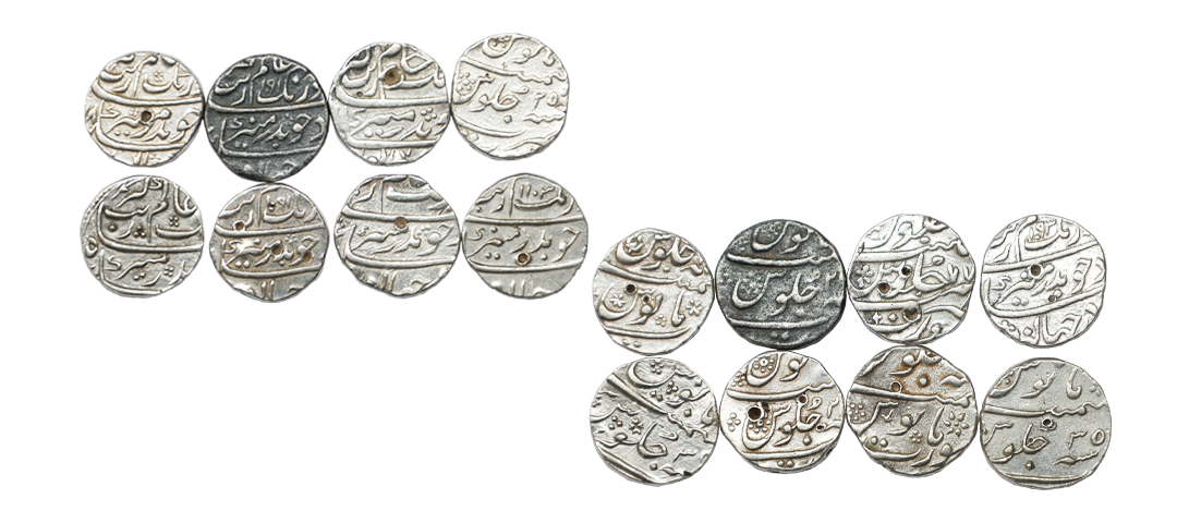 Mughal, Aurangzeb (AH 1068-1118, 1658-1707 AD), Silver Nazarana Rupee, 11.40 gms, Dar-al-Khilafat Shahjahanabad Mint, AH 1070, RY Ahad, Obv. ‘Alamgir Badshah Ghazi’ within square, ‘Abu al Muzaffar Muhiyaldin Muhammad Aurangzeb Bahadur Sana 1070’ around & dotted borders around, Rev. ‘zarb Dal al-Khilafat Shahjahanabd’ within square, ‘julus maimanat manus Sana Ahad’ around & dotted borders around, Unlisted, struck on broad flan, very fine, extremely rare. This exceptional specimen features a broad flan, reminiscent of prestigious Nazarana coins used for ceremonial occasions. Both sides are meticulously struck, showcasing clear and fully readable legends.