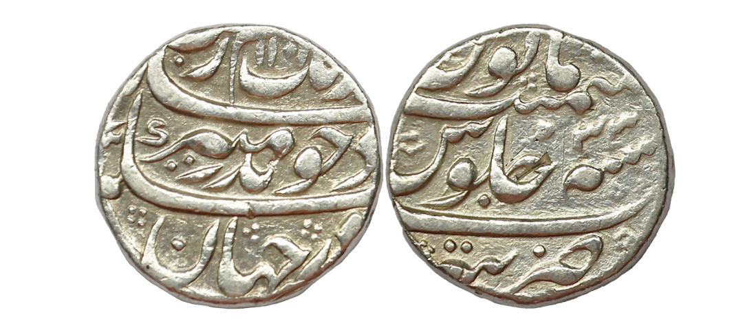 Mughal, Aurangzeb (AH 1068-1118, 1658-1707 AD), Silver Nazarana Rupee, 11.40 gms, Dar-al-Khilafat Shahjahanabad Mint, AH 1070, RY Ahad, Obv. ‘Alamgir Badshah Ghazi’ within square, ‘Abu al Muzaffar Muhiyaldin Muhammad Aurangzeb Bahadur Sana 1070’ around & dotted borders around, Rev. ‘zarb Dal al-Khilafat Shahjahanabd’ within square, ‘julus maimanat manus Sana Ahad’ around & dotted borders around, Unlisted, struck on broad flan, very fine, extremely rare. This exceptional specimen features a broad flan, reminiscent of prestigious Nazarana coins used for ceremonial occasions. Both sides are meticulously struck, showcasing clear and fully readable legends.