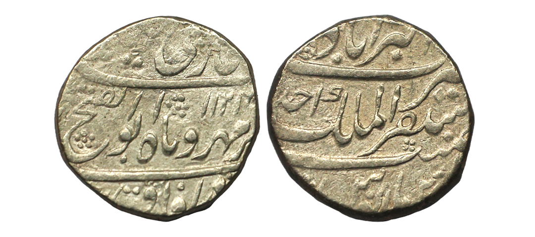 Mughal, Shah Alam Bahadur, Silver Rupee, Dar us sarur Burhanpur Mint, superb bold strike with excellent Luster and toning on the whole specimen, really attractive. Graded by NGS as MS 64. Extremely Rare.