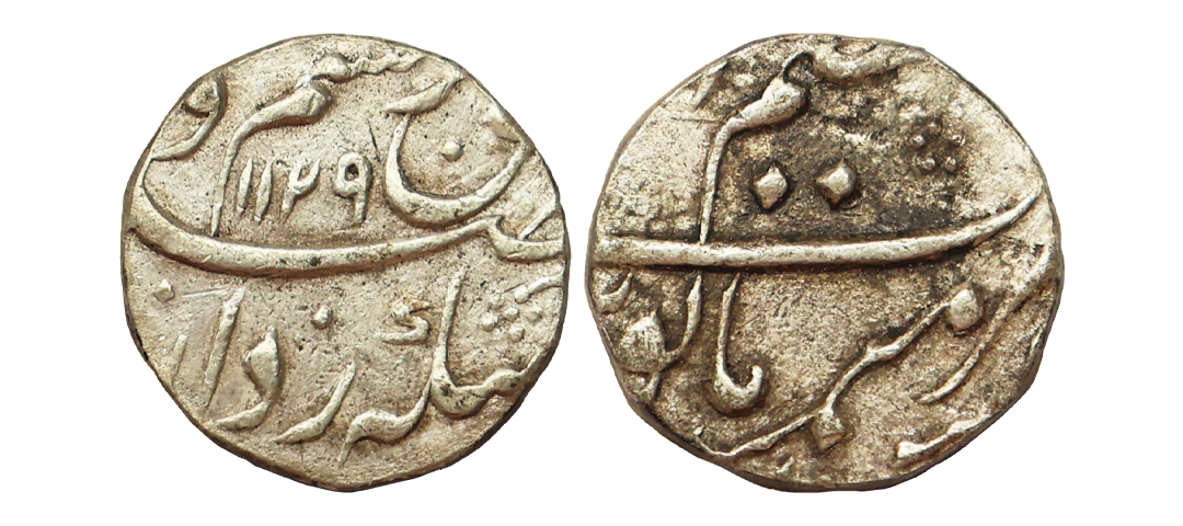 Mughal, Farrukhsiyar (AH 1124-1131, 1713-1719 AD), Silver Rupee, 11.51 gms, Mustakir Al Mulk Azimabad Mint, AH (11)31, RY 8, Bahr-o-Barr Couplet, Obv. sikka zad az fazl-e-haq bar sim-o-zar, badshahe bahr-o-barr Farrukhsiyar, Rev. sana julus maimanat manus mustakir al mulk azimabad Mint, KM # 377.14, very fine, very scarce.