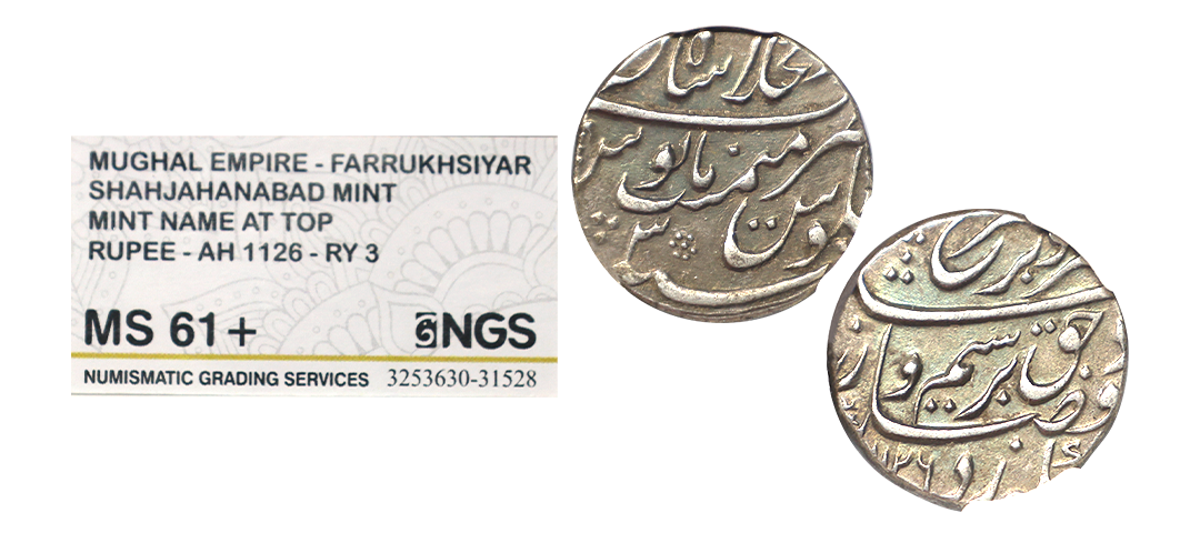 Mughal, Farrukhsiyar (AH 1124-1131 / 1713-1719 AD), Gold Mohur, 10.80g, Azamnagar Gokak Mint, RY 2, mint name split in two parts. Unlisted in KM. Extremely Fine.
