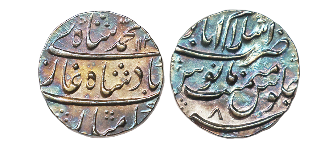 Mughal, Farrukhsiyar (AH 1124-1131 / 1713-1719 AD), Gold Mohur, 10.80g, Azamnagar Gokak Mint, RY 2, mint name split in two parts. Unlisted in KM. Extremely Fine.