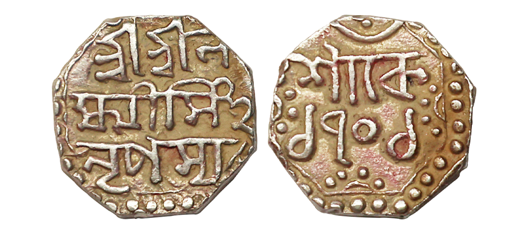 Assam, Lakshmi Simha (SE1691-1702 /1769-1780AD), Silver Rupee, 11.32 gms, SE 1692, Obv. Sri Sri Hara /Gauri Chara /na ra/vinda /madhukarasya, Rev. Sri Sri Svarga /Deva Sri Laksmi /Simha nrpasya sake 1692, lion to right, R&B #Q24.3, KM #182, extremely fine, very scarce.