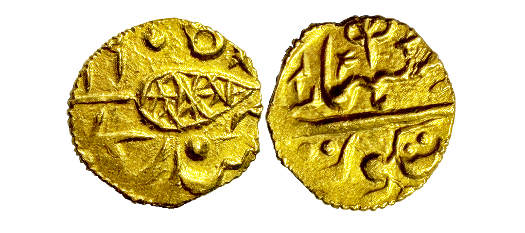 Sikh Empire, Multan Mint, Gold Rupee, 0.65g, issued by Diwan Mulraj, complete date VS 1905, leaf symbol (Herrli 11.09.04). Extremely Fine, Rare.