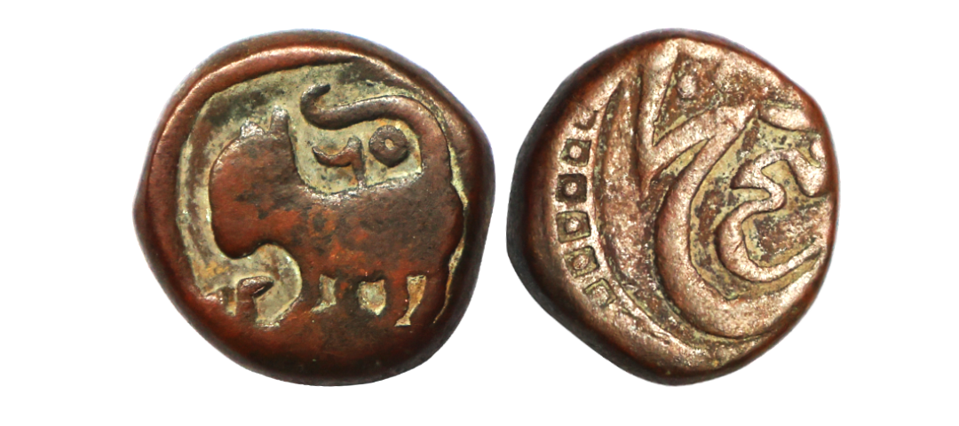 Sikh Feudatory, Derajat, Copper Billishahi Paisa, 7.09 gms, AH 1265, Obv. Lion facing left with Date AH 1225, Rev. ‘Fateh Ra’ej’ with partial decorative border, KM # C102, pleasing eye appeal, full dated specimen, extremely fine, very rare.