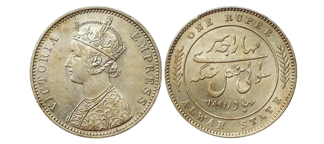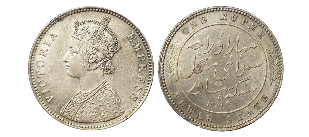 Tripura, Durga Manikya, citing Queen Sumitra (1809-1821 AD), Silver Tanka, 10.66 gms, SE 1731, Obv. Lion to left with trident above, SaKe 1731 below, within double circle containing groups of four beads arranged lozenge-wise between the circles Rev. Kali Pade/Sri Sri Yuta Durga/Manikya Deva Sri/mati Sumitra/Maha Devyau, R&B #264, KM #275, very fine, probably ex-mount, extremely rare.