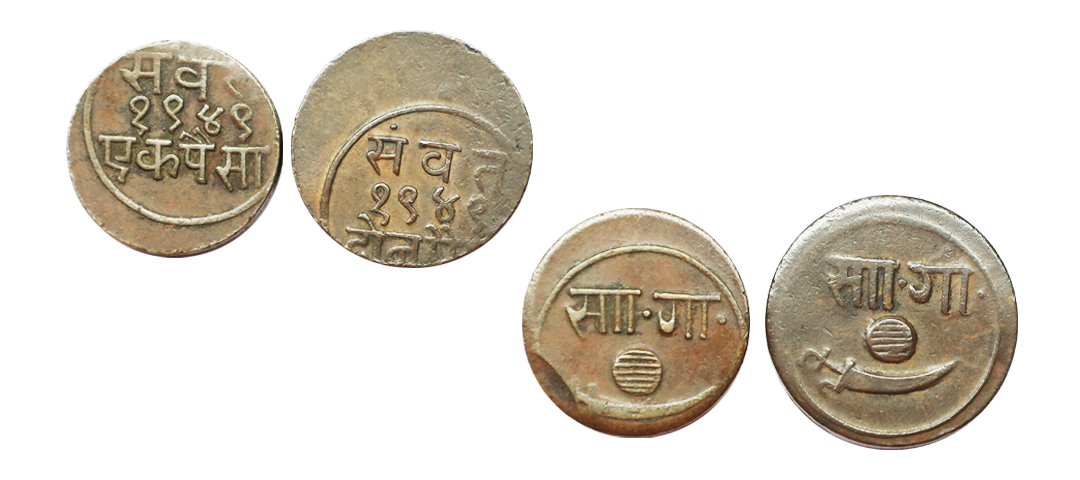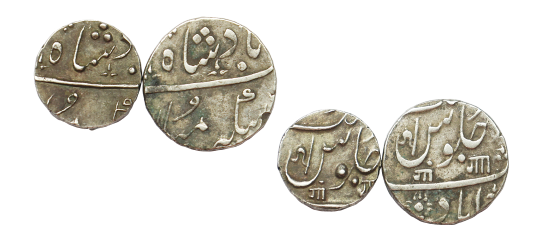 Bajranggarh State, Jai Singh Khichi (AH 1212-1234, 1797-1818 AD), Silver Rupee, 10.65 gms, Jay Nagar Mint, RY 18, Obv. Sri Raghav Paratap Pavan Putra Bal Payake, within dotted border, mace as a mintmark, Rev. yeh sike par chaap maharaj jai singh ki 18 jainagar" meaning the stamp of Jai Singh on this coin, 18 Jainagar, KM # 6, very fine, rare.