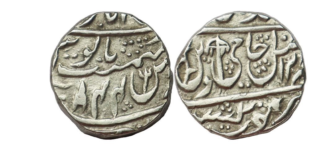 Bindraban State, INO Shah Alam II (AH 1174-1221, 1759-1806 AD), Set of 3 coins, Silver Rupee, 10.80 gms, Silver ½ Rupee, 5.18 gms, Silver 1/4 Rupee, 2.52 gms, Mominabad Bindraban Mint, RY 44, chhatra (umbrella) symbol in obv and katar (dagger) symbol in the rev, KM # 10.4, 9a, 8a, very fine, very rare as a set.
