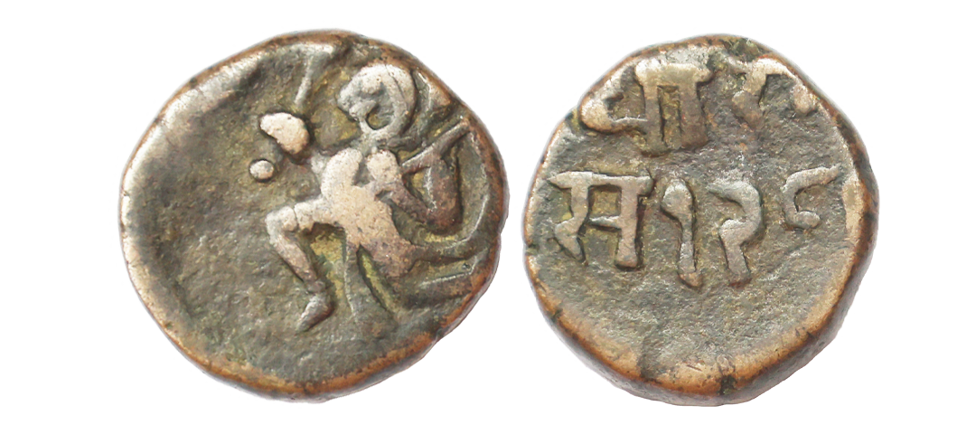 Dhar State, Annonymous Issue, Copper ½ Paisa, 5.43 gms, Obv. leaf, Rev. sword, Unlisted in KM, very fine, very rare.
