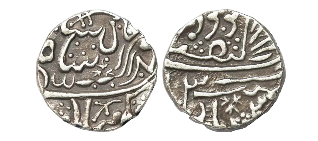 Jodhpur State, INO Muhammad Akbar II (AH 1221-1253, 1806-1837 AD), Silver Rupee, 11.22 gms, Dar al Mansur Jodhpur Mint, sword as a mint mark on obverse, very fine, scarce.
