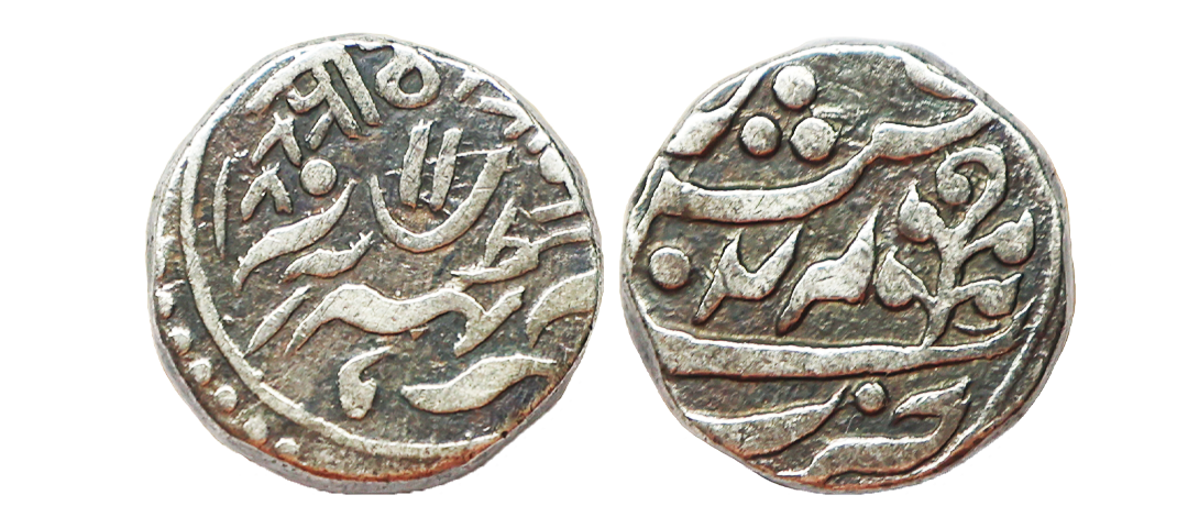 Kashmir State, Ranbir Singh (VS 1914-1942, 1857-1885 AD), Ceremonial Issue, Gold 1/5 Mohur, 2.34 gms, Srinagar Mint, VS 1932, ‘JHS’ type, Obv. Pipal leave in centre & partial legends ‘Sri Raghunath ji Sahai zarb srinagar with initials JHS also visible partially, Rev. Takri legends partially readable ‘Raghanatha Ji Saha Jarava Srinagara with date’, Unlisted Denomination, Graded by PCGS as MS63, extremely rare. Note: This is an extremely rare denomination. While almost a dozen 1/8 Mohur coins surfaced in European auctions since last year, this particular 1/5 Mohur denomination has been offered globally only twice since the last decade. It is a highly sought-after coin in an immaculate grade, exhibiting superb mint luster visible throughout both sides of the coin's field.
