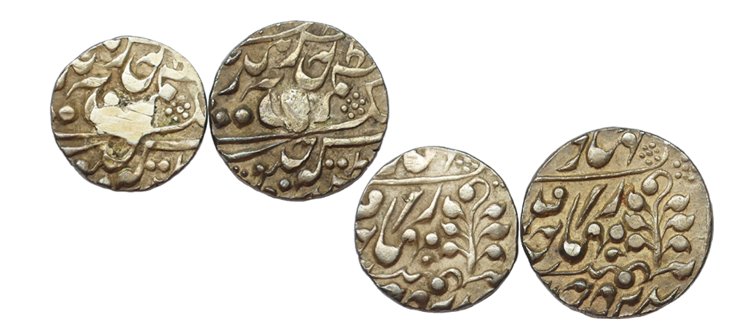 Kashmir State, Ranbir Singh (VS 1914-1942, 1857-1885 AD), Ceremonial Issue, Gold 1/5 Mohur, 2.34 gms, Srinagar Mint, VS 1932, ‘JHS’ type, Obv. Pipal leave in centre & partial legends ‘Sri Raghunath ji Sahai zarb srinagar with initials JHS also visible partially, Rev. Takri legends partially readable ‘Raghanatha Ji Saha Jarava Srinagara with date’, Unlisted Denomination, Graded by PCGS as MS63, extremely rare. Note: This is an extremely rare denomination. While almost a dozen 1/8 Mohur coins surfaced in European auctions since last year, this particular 1/5 Mohur denomination has been offered globally only twice since the last decade. It is a highly sought-after coin in an immaculate grade, exhibiting superb mint luster visible throughout both sides of the coin's field.