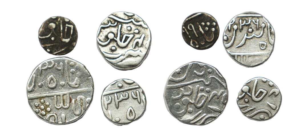 Mewar State, INO Shah Alam II, Set of 3 coins, Udaipur Mint, Silver Rupee, 10.89 gms, Silver ½ Rupee, 5.00 gms, Silver ¼ Rupee, 2.55 gms, KM #Y30, 43 & 32, very fine, very scarce as a set.