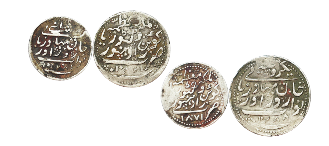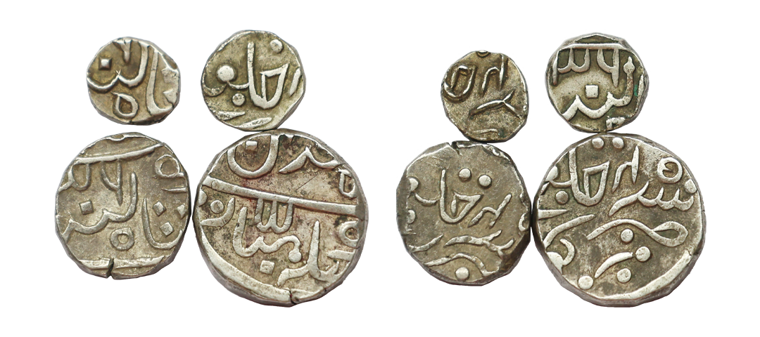Note: Narwar rupee overstruck on Mughal Rupee of Shah Alam II, undertype is clearly visible & readble on both sides.