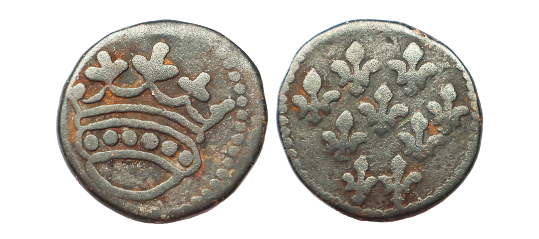 French India, Pondicherry, Copper ½ Fanon, 4.87 gms, ND, Obv. Crown, Rev. 9 fleurs-de-lis, KM#36, very fine, rare.