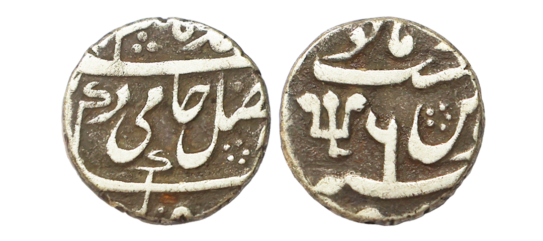 Bengal Presidency, INO Shah Alam II, Silver Rupee, 11.36 gms, Azimabad Mint, AH 1183, RY 11, Trident as a mint mark on reverse, KM #592, Ex Robert P. Puddester Collection, very fine, rare.