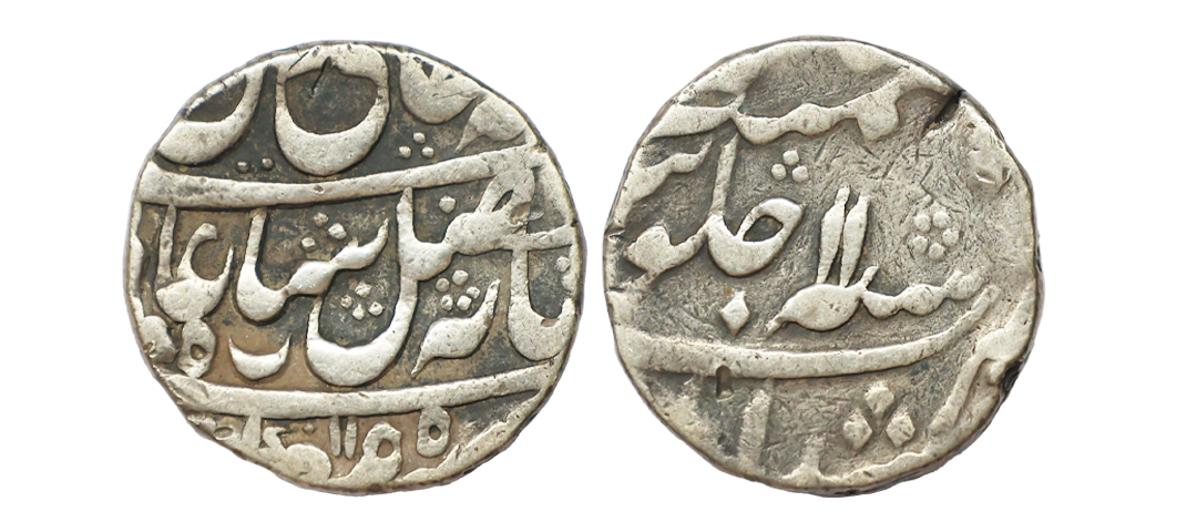 Bengal Presidency, INO Shah Alam II (AH 1174-1221, 1759-1806 AD), Silver Rupee, 11.46 gms, Murshidabad Mint, AH 1181, RY 8, ‘Saya-e-fazle elah’ couplet, KM #84.1, very fine+, very scarce.