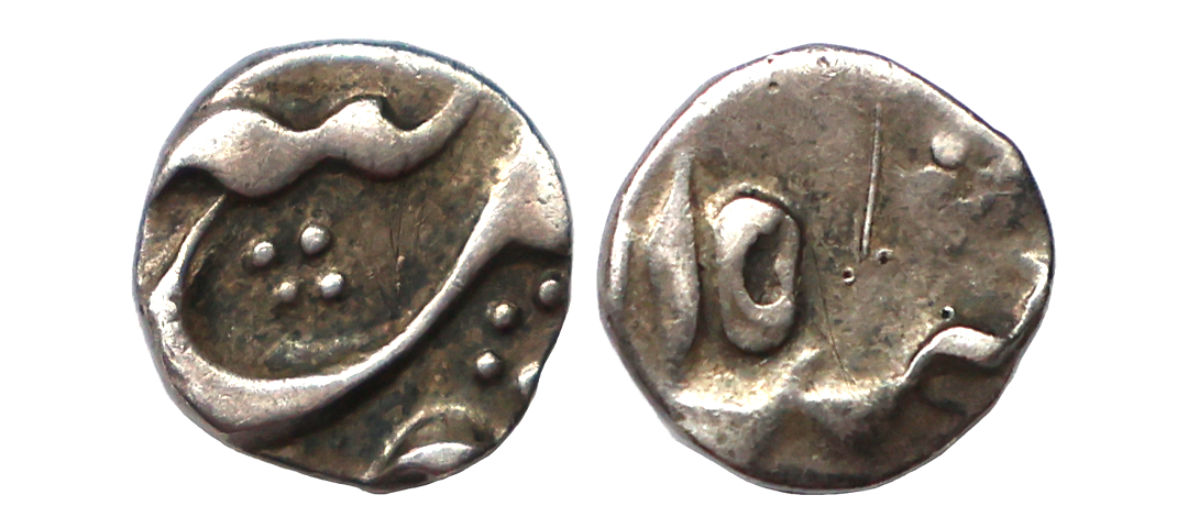 Bengal Presidency, INO Shah Alam II (AH 1174-1221, 1759-1806 AD), Silver 1/16 Rupee, 0.70gms, Murshidabad Mint, RY 12, ‘saya-e-fazle elah’ couplet, Very fine, very rare.