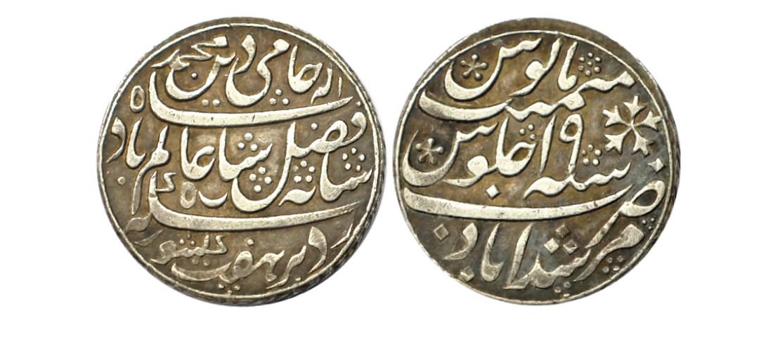 Bengal Presidency, INO of Shah Alam II, Silver 1/2 Rupee, 5.75 gms, Murshidabad Mint, AH 1205, RY 19, Prid #149, KM #83.3, very fine, rare.