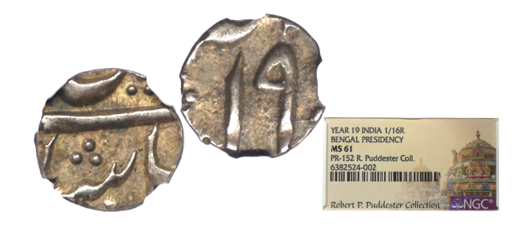 Bengal Presidency, Murshidabad mint, silver rupee, struck at Murshidabad (dot in second circle on obverse), in the name of Shah Alam II ND/RY 19, Oblique Milling, 11.34g. Very fine, Rare.