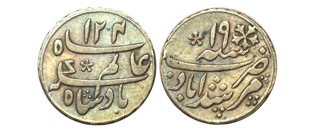 Bengal Presidency, Murshidabad Mint, Silver 1/16 Rupee, in the name of Shah Alam II, RY 19, PR- 152, Ex Robert P. Puddester Collection, Very Rare, Graded by NGC as MS61(TOP POP).