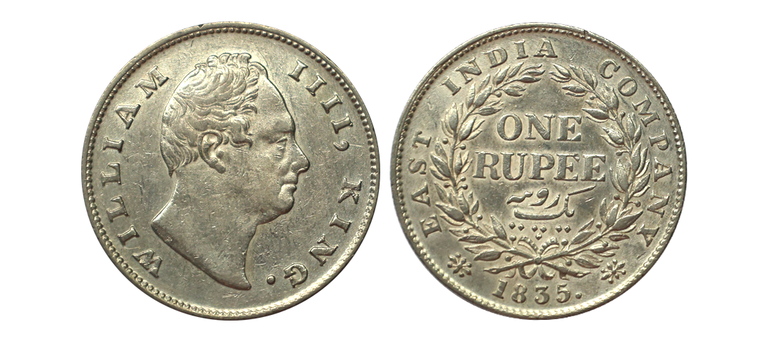 William IIII King, Silver Rupee, 1835, Calcutta Mint, F Dugout, Obv: A/ Rev: III With Bud leaf, Extra Matel on Date of "8", Beautiful Toned, UNC.