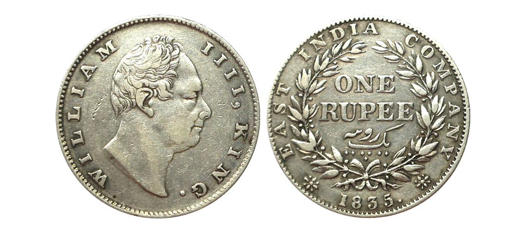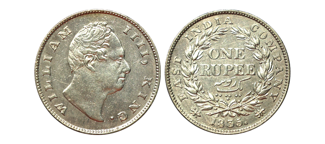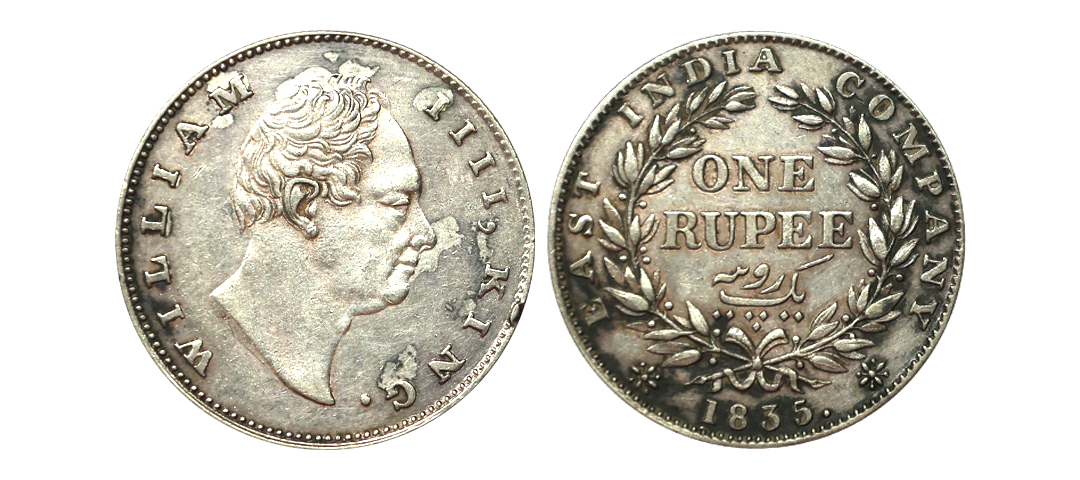 William IIII King, Silver Rupee, 1835, Calcutta Mint, F incuse, Obv: A/ Rev: I W/O Bud leaf Scarce, AUNC.