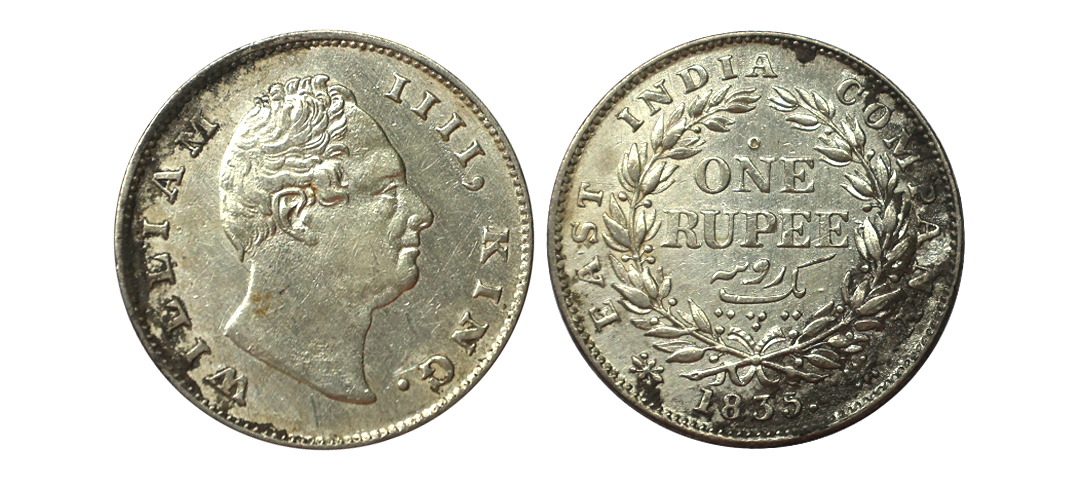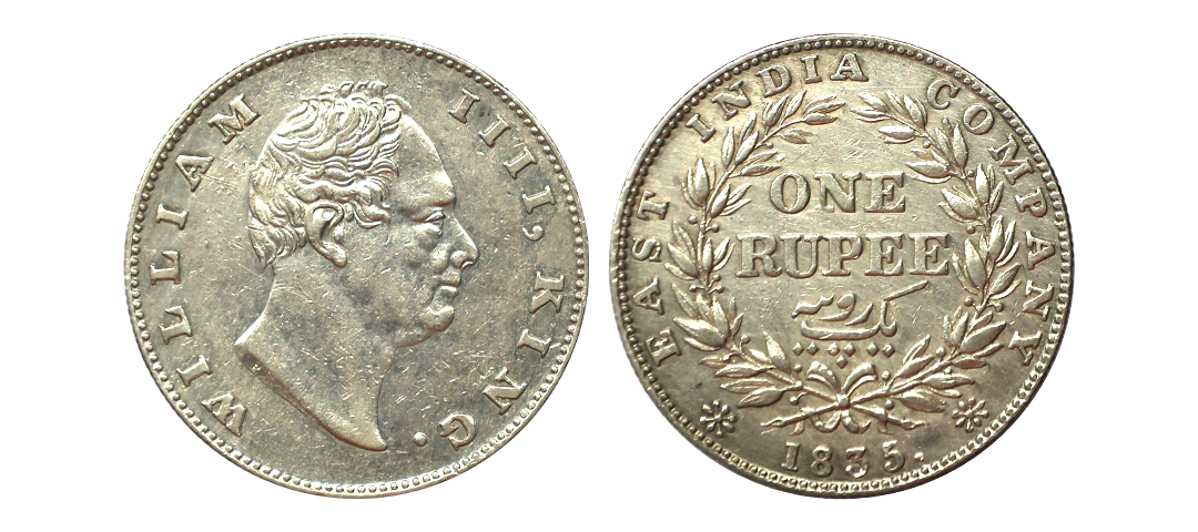 William IIII King, Silver Rupee, 1835, Calcutta Mint, F incuse, Obv: A/ Rev: II W/O Bud leaf, Extra Fine.
