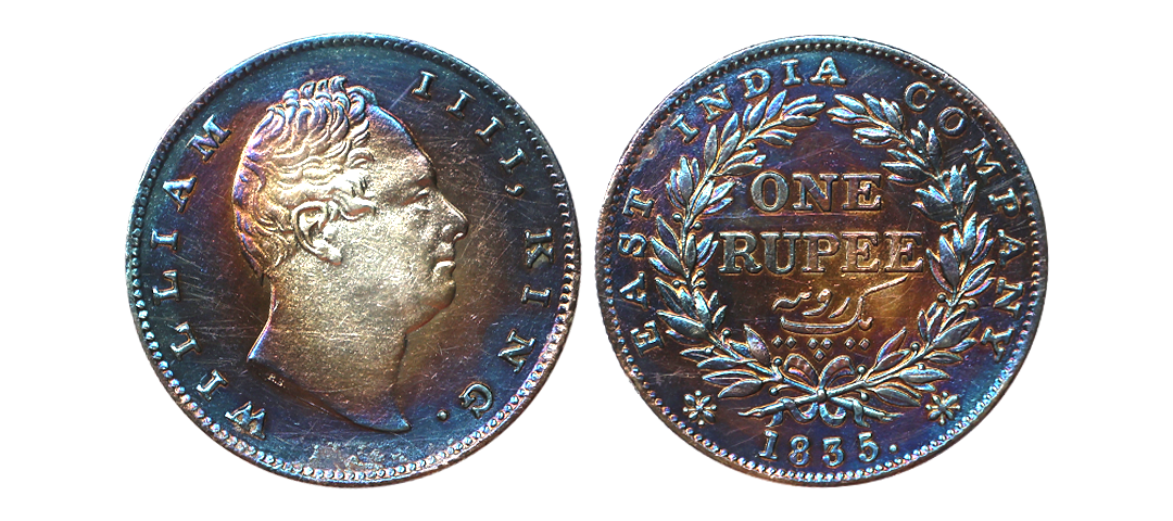 William IIII King, Silver Rupee, 1835, Calcutta Mint, F incuse, Obv: A/ Rev: II W/O Bud leaf, SLIGHT Doubling in the Area of Ear, Scarce, AUNC.