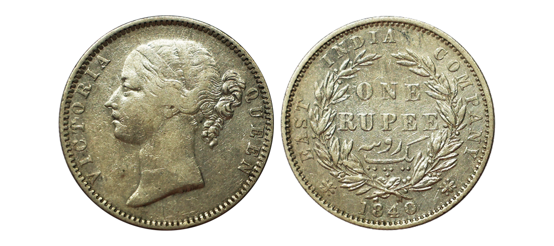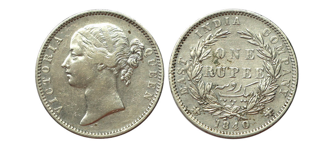 Victoria Queen, Divided Legend, Silver Rupee, Bombay/ Calcutta Mint, 1840, 28 Berries, Graded By NGC MS62.