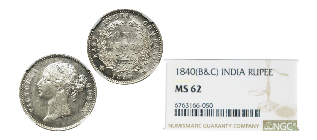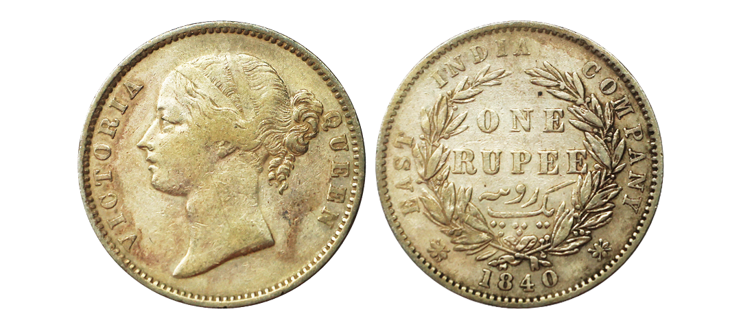 Victoria Queen, DL, Silver Rupee, 1840, Madras Mint W.W.B, 28 Berries, Very Scarce, Extra Fine+.