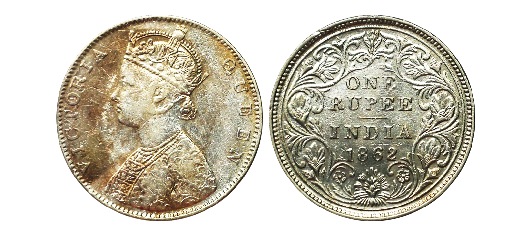 Victoria Queen, Silver Rupee, 1862, Bombay Mint, 1/2 Dots, Obv: C/Rev: II, Very Scarce, Extra Fine.