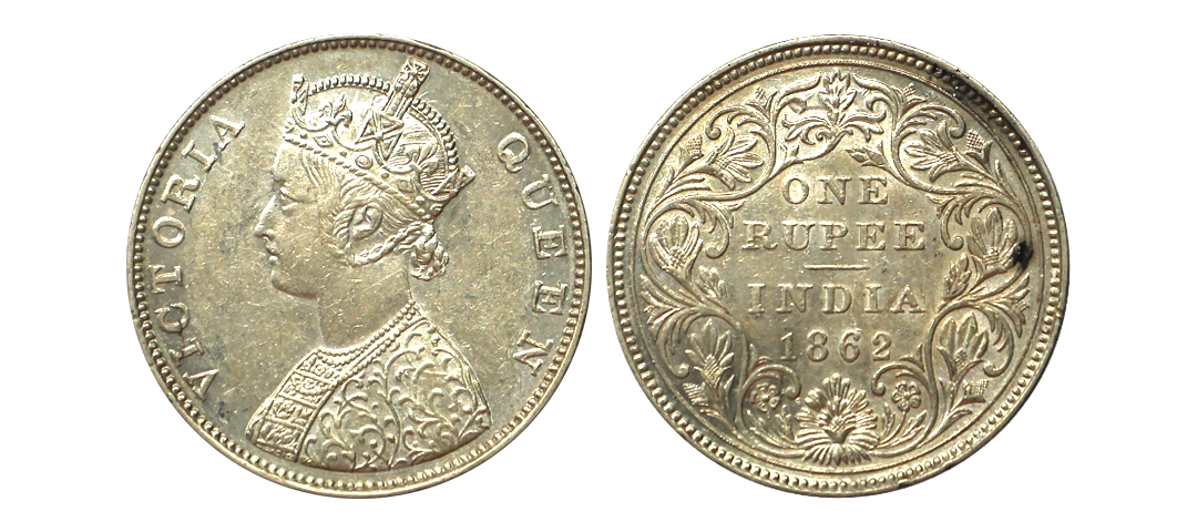 Victoria Queen, Silver Rupee, 1862, Calcutta Mint, Obv: A/ Rev: II, 3 Pinapple Like Buds, Extemely Rare, Extra Fine.