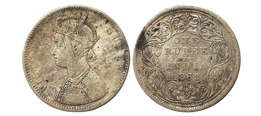 Victoria Queen, Silver Rupee, 1862, Calcutta Mint, Obv: A/ Rev: III, Rare, Very Fine.