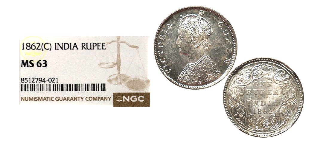Victoria Queen, Silver Rupee, 1862, B/II, 3/0 dots, one additional dot was punched on the 2/0 die, to make it apt for the 1865 year, very rare in this grade.