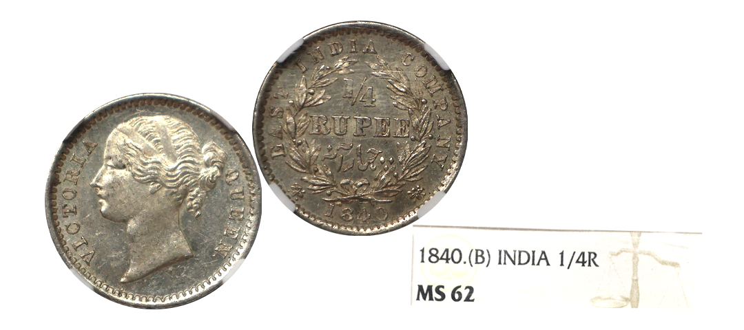 Victoria Queen, Silver Rupee, 1862, Rupee, A/II, 0/4 dots, Excellent mint luster with beautiful strike,Graded by NGC as MS62.