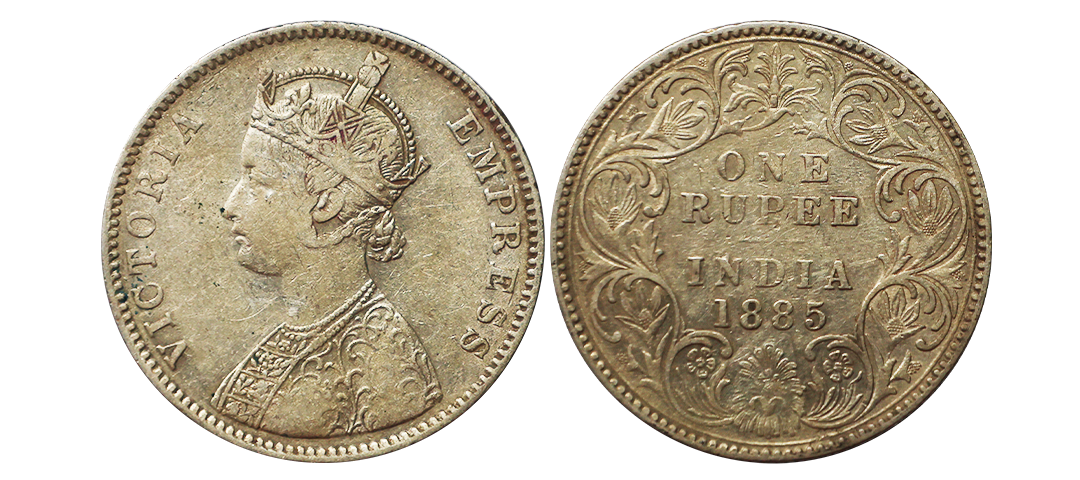 Victoria Empress, Silver Rupee, 1885, A3/I, Double B Raised on top flower, This is an Exceedingly Rare Variety and is not Published in any of the Reference Catalogues.