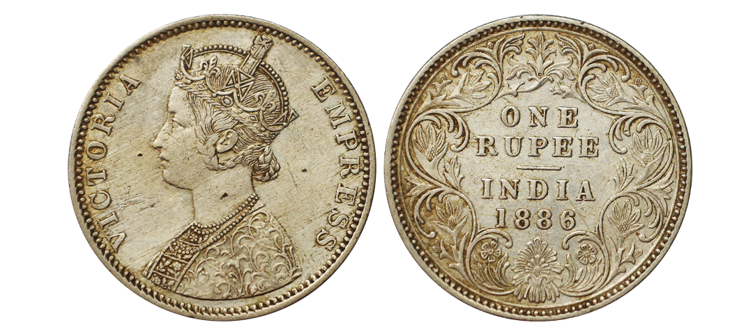 Victoria Empress, Silver Rupee,1886/5 overdate rupee, C2/ I, B incuse at top, excellent impression of the undertype 5, extremely rare overdate in one of the finest grades for the type.