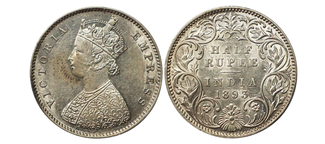 Victoria Empress, Silver 1/2 Rupee, 1893, Bombay Mint, Superb Luster, Extremely Rare.