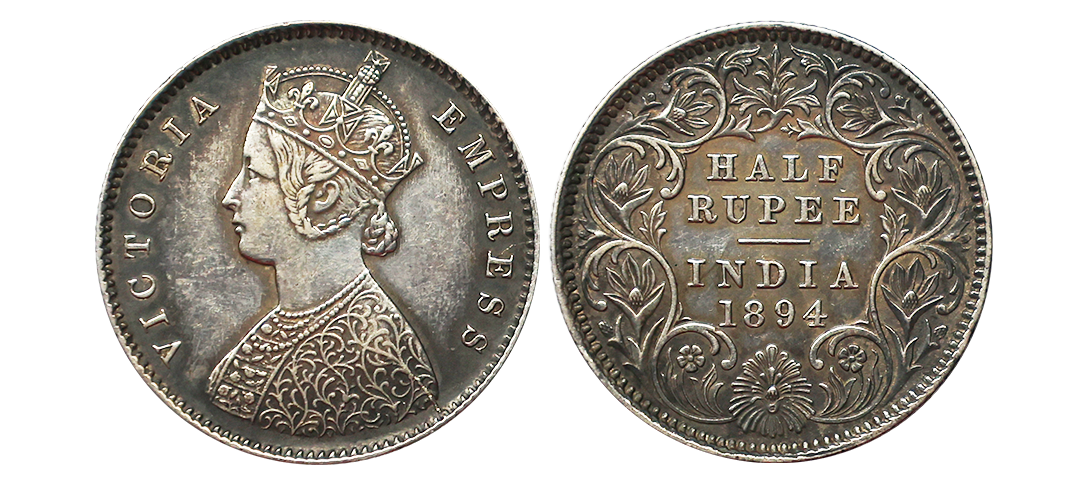 Victoria Empress, Silver 1/2 Rupee, 1894, Superb Deep Bold Strike With Proof Like Finish on obverse, Difficult to get.