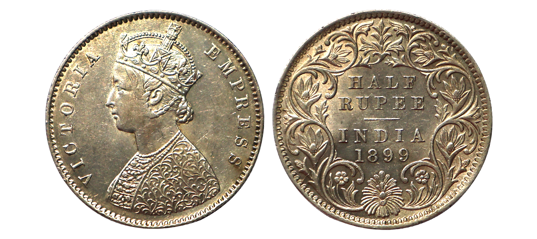 Victoria Empress, Silver 1/2 Rupee, 1897, Bomaby Mint, NGC Graded as MS63, Extremely rare.