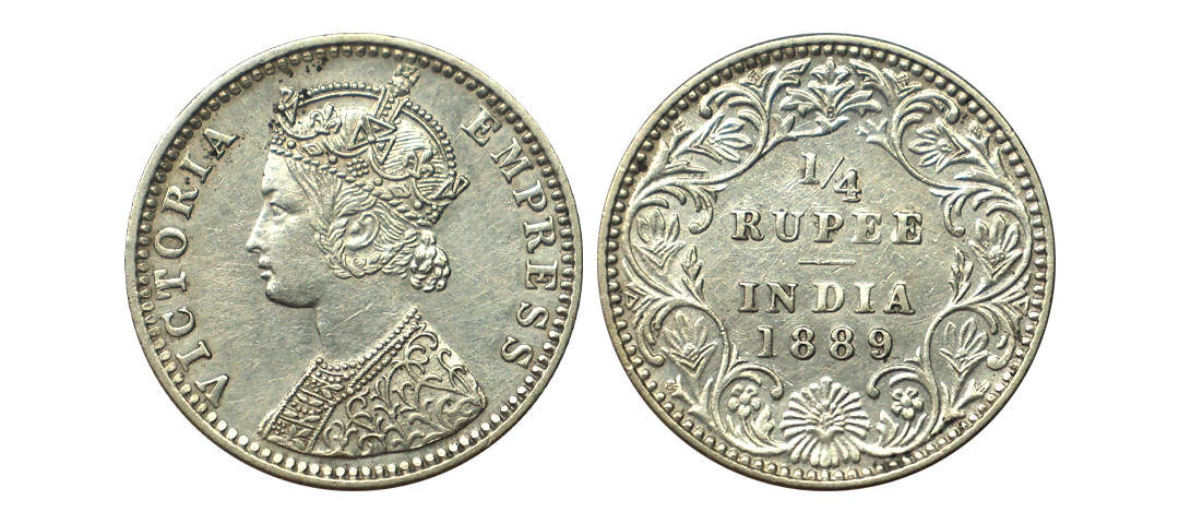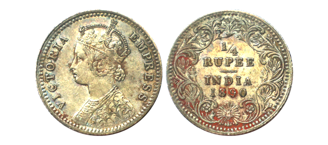 Victoria Empress, Silver 1/4 Rupee, 1886, Calcutta Mint, Obv: C/Rev: I, C Incuse, Rare, Very Fine+.