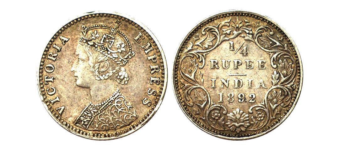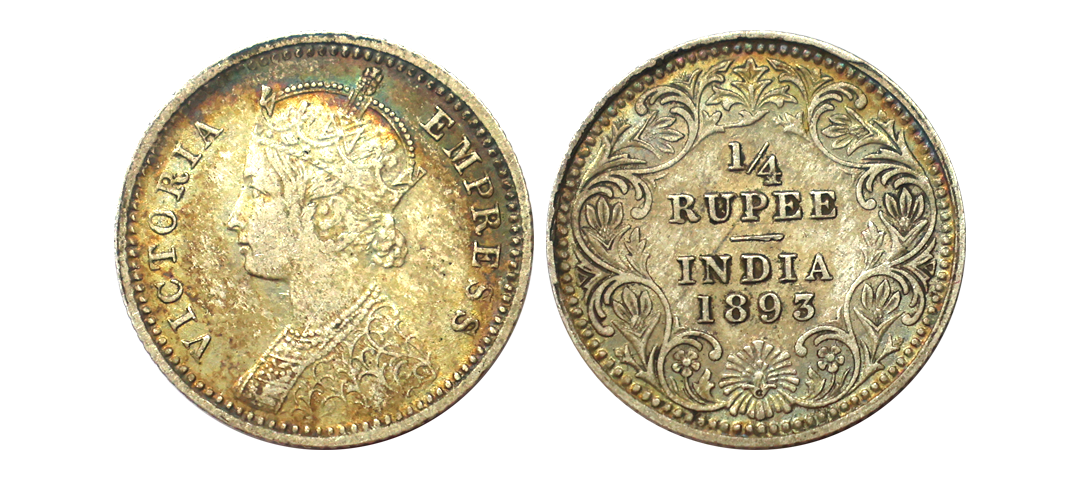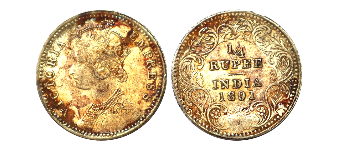 Victoria Empress, Silver 1/4 Rupee, 1890, Calcutta Mint, C Incuse, Scarce, Extra Fine+.