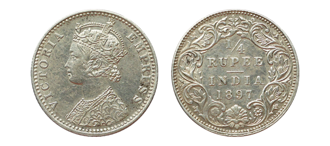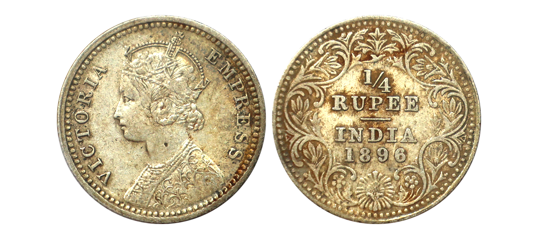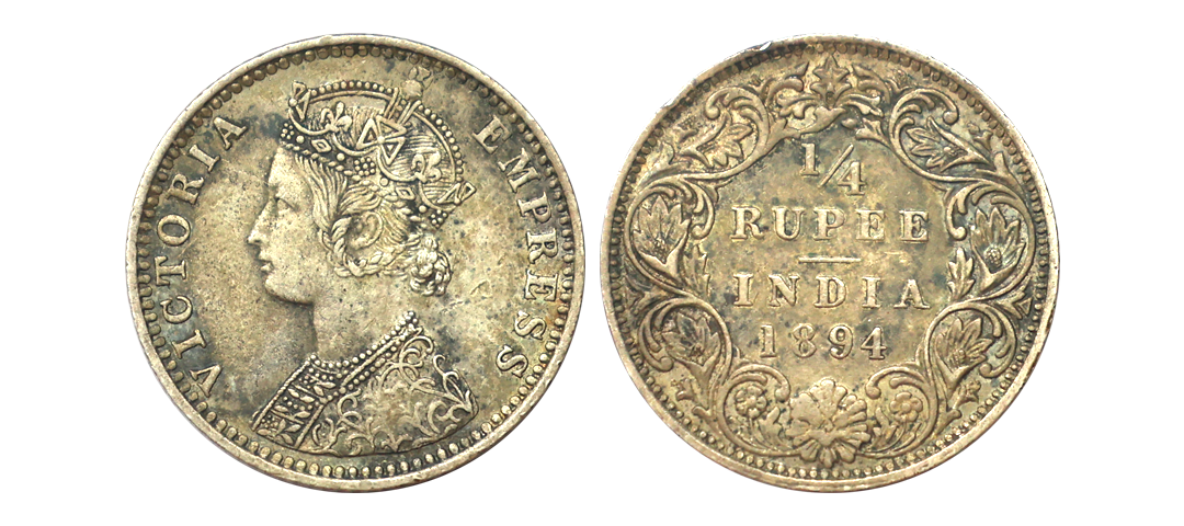 Victoria Empress, Silver 1/4 Rupee, 1893, Calcutta Mint, C Incuse, Scarce, Beautifull Toned, AUNC.