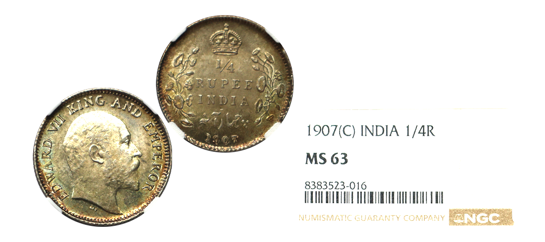 Edward VII , Silver Rupee, 1910/00 overdate Rupee, With Beautiful Impression of the undertype 0, mint Luster and Excellent Strike, Very Rare.